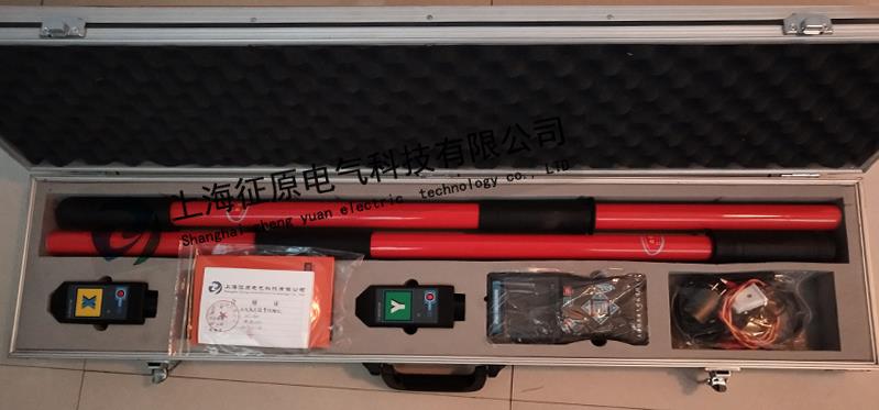 探測(cè)器連接絕緣桿,絕緣桿全部拉伸,探測(cè)器可以掛在線路上接觸核相。 |
