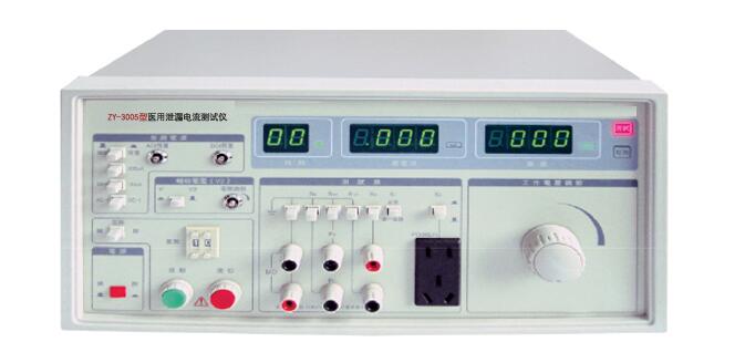 醫(yī)用泄漏電流測(cè)試儀用于測(cè)量醫(yī)用電器設(shè)備的連續(xù)漏電流和患者輔助電流的檢測(cè)試驗(yàn)設(shè)備。ZY-3005系列醫(yī)用泄漏電流測(cè)試儀是按照GB9706.1-2007(IEC60601-1:1988)《醫(yī)用電氣設(shè)備 第一部分:安全通用要求》設(shè)計(jì)、生產(chǎn)。其測(cè)試回路(MD)輸入阻抗模擬人體阻抗,符合GB9706.1-2007(IEC60601-1:1988)的要求,測(cè)試電流達(dá)5uA,并為用戶提供一個(gè)輸出電壓0~250V連續(xù)可調(diào),和最高網(wǎng)電壓的110%的電壓源,輸出的基本容量配置為300VA的隔離電源,可以滿足Ⅰ、Ⅱ各類型設(shè)備進(jìn)行正常狀態(tài)下和單一故障下的對(duì)地漏電流、外殼漏電流、患者漏電流、患者輔助電流的測(cè)試。